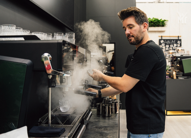 Als einer der bekanntesten Namen in der internationalen Barista-Szene unterstützt Daniel Gerlach WMF Professional Coffee Machines seit Anfang März als offizieller Marken- und Produktbotschafter. Auf der World of Coffee 2024 begeisterte er nicht nur die Besucher von WMF Professional Coffee Machines mit seiner Live-Performance, sondern trat darüber hinaus auch als deutscher Vertreter bei der internationalen SCA Latte Art Championship an.